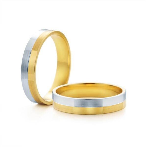 Esküvői karikagyűrűk: kétszínű arany, lapos, 4 mm