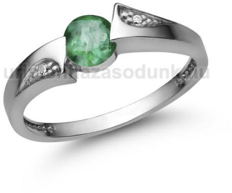 3 köves, modern, fehér arany eljegyzési gyűrű smaragd kővel és gyémánt kövekkel.