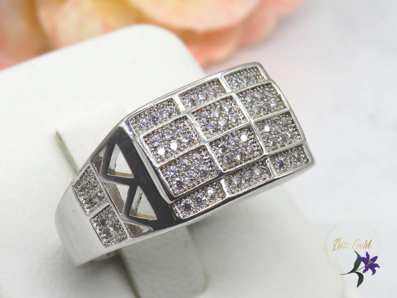 Gyönyörű ródium pecsétgyűrű tűcirkon kövekkel Szin: rodium :white Szélesség: 12mm A forgalmazott divatékszerek alapanyaga nikkel és ólommentes ezért többnyire nem okoznak allergiás tüneteket, nyugodtan hordhatják fémérzékeny emberek is. Általában nem színezik a bőrt és más divatékszerekhez képest nagyságrendekkel jobb kopásállósággal rendelkeznek. A fehér (ezüs
