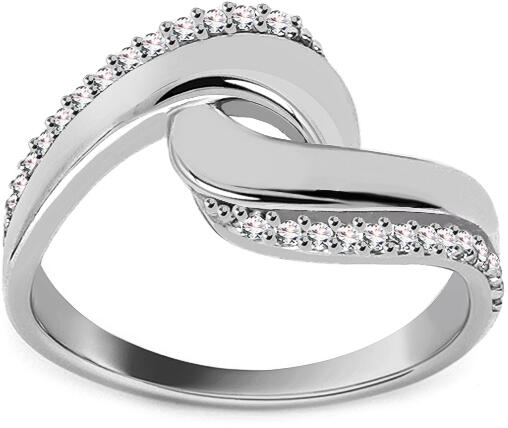 Egy gyönyörű arany gyűrű, amelynek vonalai különválnak, majd újra összeérnek, hogy egy csodás díszt hozzanak létre. Tiszta cirkóniák egészítik ki, amelyek a nap sugarainak segítségével mesésen csillognak. A gyűrű tizennégy karátos fehéraranyból készül.