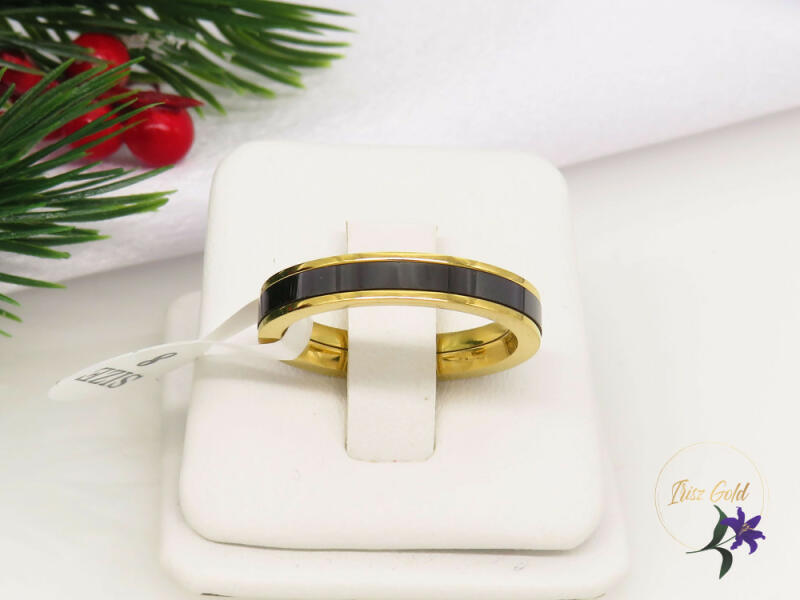 Nemesacél kerámiabetétes karikagyűrű Szin:18K-fekete Méret: 4mm A forgalmazott divatékszerek alapanyaga nikkel és ólommentes ezért többnyire nem okoznak allergiás tüneteket, nyugodtan hordhatják fémérzékeny emberek is. Általában nem színezik a bőrt és más divatékszerekhez képest nagyságrendekkel jobb kopásállósággal rendelkeznek. A fehér (ezüst) színű ékszerek ug