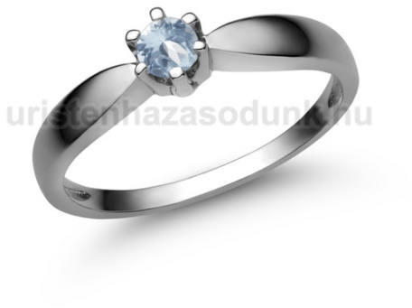 Akvamarin köves, szoliter gyűrű, szélesebb sínnel, karmos foglalatban.
