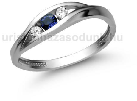 3 köves eljegyzési gyűrű, kék zafír kővel és cirkónia kövekkel, praktikus kő foglalattal.
