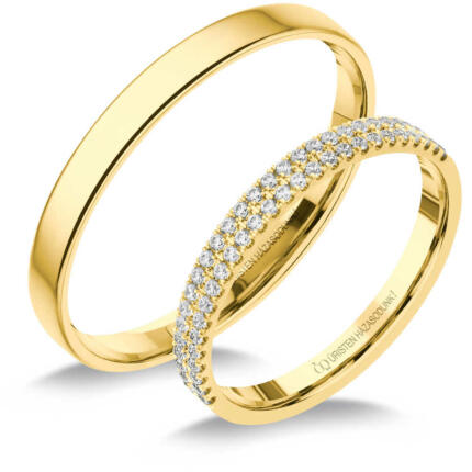 Klasszikus, vékony, sárga arany karikagyűrű. Különlegessége a női gyűrű 2 soros cirkónia köves díszítése.