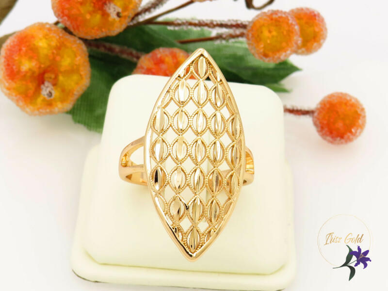 Antiallergén gyönyörű hosszú fazonú sejtmintás gyűrű Szin: 18K Szélesség: 35x20mm A forgalmazott divatékszerek alapanyaga nikkel és ólommentes ezért többnyire nem okoznak allergiás tüneteket, nyugodtan hordhatják fémérzékeny emberek is. Általában nem színezik a bőrt és más divatékszerekhez képest nagyságrendekkel jobb kopásállósággal rendelkeznek. A fehér (ezüs