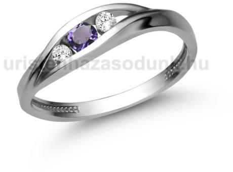 3 köves eljegyzési gyűrű, ametiszt kővel és cirkónia kövekkel, praktikus kő foglalattal.