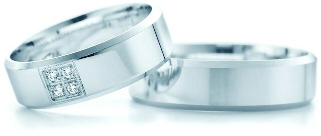 Esküvői karikagyűrűk: fehérarany, szakaszos profillal, 6 mm