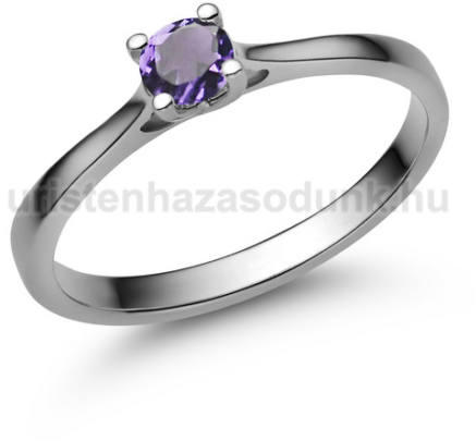 Ametiszt köves, szoliter gyűrű fehér arany foglalatban.