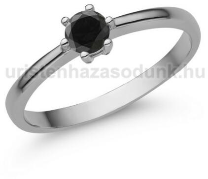 Klasszikus, eljegyzési szoliter gyűrű fekete gyémánt kővel, fehér arany foglalatban.