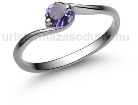 Fehér arany eljegyzési gyűrű lila, ametiszt kővel, csavart stílusban.