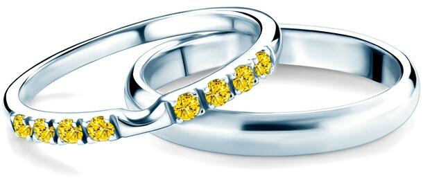 The Journey esküvői karikagyűrűk: fehérarany, sárga zafír, félkarikás, 2 mm és 3 mm