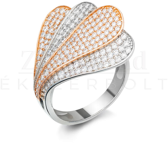 Fehér és rozé arany karikagyűrű cirkónia kövekkel.