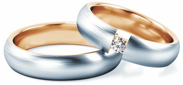 Esküvői karikagyűrűk: kétszínű arany, karika, 5 mm