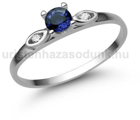 Modern, 3 köves eljegyzési gyűrű kék zafír kővel és gyémánt kövekkel.