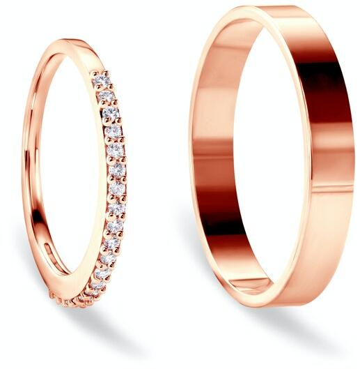 Share Your Love esküvői karikagyűrűk: rózsaarany, fehér zafír, lapos, 1,4 mm és 3 mm