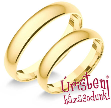 Klasszikus, sárga arany karikagyűrű. Kő nélküli, kézzel készített, kívül-belül domború profillal.