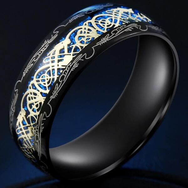 Ornament Gyűrű Különleges Ornament gyűrű uraknak verhetetlen áron. Ez a gyűrű Önt is biztosan elbűvöli. Az ékszer nem tartalmaz nikkelt, ezért érzékeny bőrű emberek is viselhetik. Tulajdonságok: A gyűrű szélessége: 0,6 A gyűrű mérete: 52mm (kerület) Anyaga: Nemesacél 316L Szín: Fekete/Kék Az útmutatót a gyűrű méretének kiválasztásához az alábbi ábrán talá