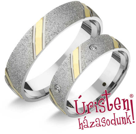 Hagyományos, 4.5 mm széles, sárga arany karikagyűrű. A női gyűrű gyémánt kövekkel ékített.