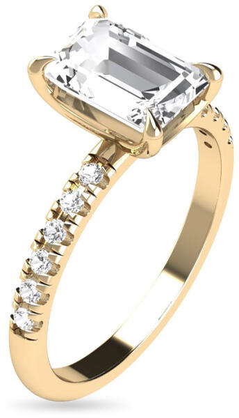 A középső, 0,150 ct súlyú smaragdkő uralja a gyűrűt. A tizenhat gyémánt össztömege 0,050 ct, H színnel és SI1 tisztasággal. A gyémántok iZlato® eredetiségi tanúsítvánnyal rendelkeznek.