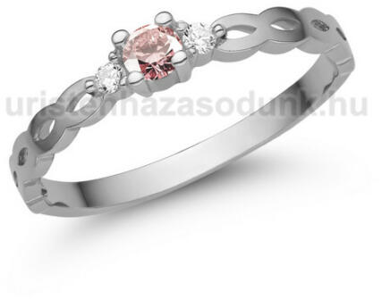 Finom, elegáns, 3 köves eljegyzési gyűrű, csavart, fehér arany foglalatban rózsaszín zafír kővel és cirkónia kövekkel.