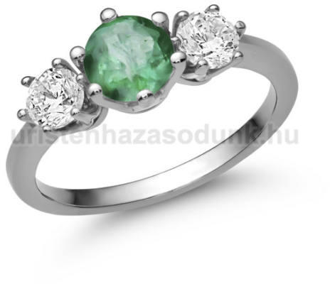 Nagy, smaragd köves eljegyzési gyűrű, 2 darab kísérő cirkónia kővel.