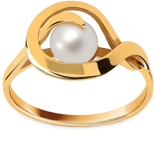 Érdekes gyűrű, amelyet a fehér természetes Biwa folyó gyöngye ural, ezüst visszaverődésekkel. Az ékszer pereme sárga aranyból készült, sima felülettel, amely egy finom rügyre emlékeztet.