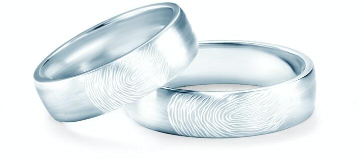 Esküvői karikagyűrűk ujjlenyomattal: fehérarany, félkarikás, 5 mm