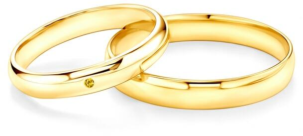 Fairytale esküvői karikagyűrűk: arany, sárga zafír, félkarikás, 3 mm és 4 mm