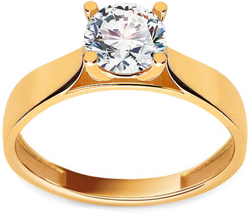 A Roux egy gyönyörű eljegyzési gyűrű, amely sárga aranyból készült, magasfényű felületi kezeléssel. A gyűrű vonalai egy koronába torkollanak, amely a gyűrű központi díszét rejti, egy négyszeresen, kiválóan foglalatba helyezett, ragyogó cirkont. Az eljegyzési gyűrű méretét a rendelkezésre álló méretek közül választhatja ki.