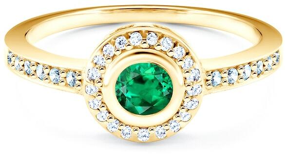 Eljegyzési szoliter gyűrű, smaragd kővel és különleges szív formával a gyűrű sínben, gyémánt kővel.