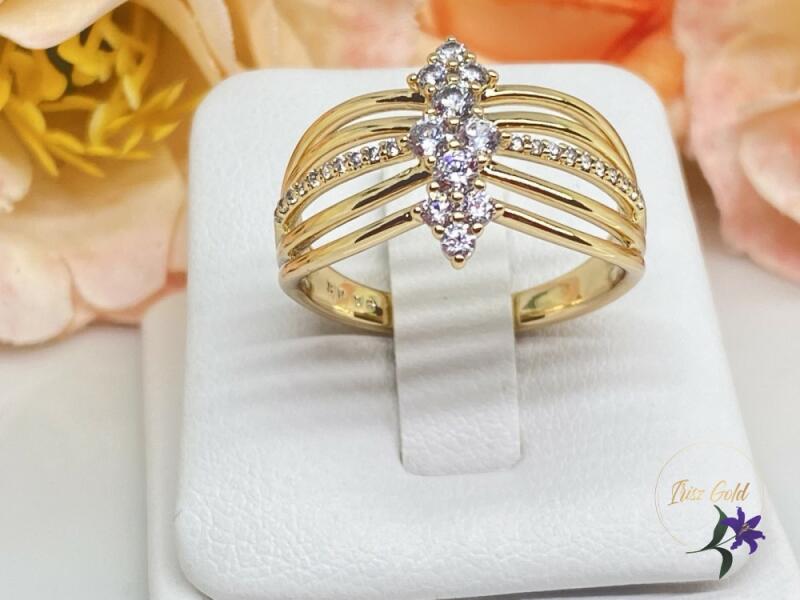 Gyönyörű formatervezett gyűrű fehér cirkónia kövekkel Szin: 18K Méret: 15mm A forgalmazott divatékszerek alapanyaga nikkel és ólommentes ezért többnyire nem okoznak allergiás tüneteket, nyugodtan hordhatják fémérzékeny emberek is. Általában nem színezik a bőrt és más divatékszerekhez képest nagyságrendekkel jobb kopásállósággal rendelkeznek. A fehér (ezüst) szín
