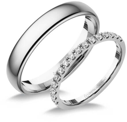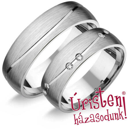 Klasszikus, fehér arany karikagyűrű. A női gyűrű 16 cirkónia kővel díszítve.