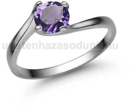 Nagy köves szoliter gyűrű, 6 mm-es ametiszt kővel fehér arany foglalatban.