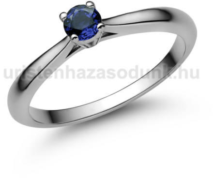 Fehér arany szoliter gyűrű, modern csiszolású kék zafír kővel.