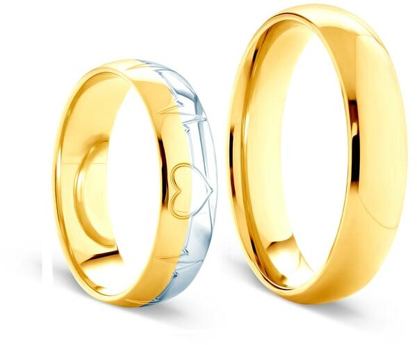 Esküvői karikagyűrűk: kétszínű arany, félkarika, 5 mm
