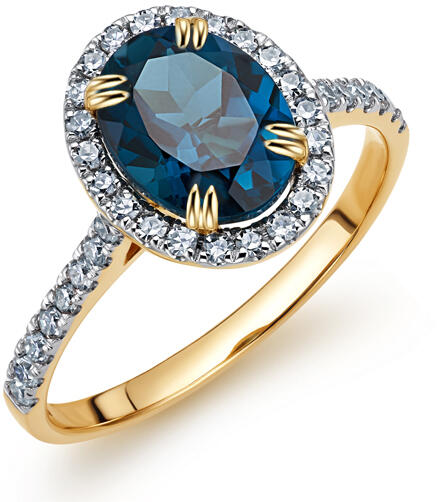 Arany gyémántgyűrű London Blue topázzal 0.330 ct, modell KU1645