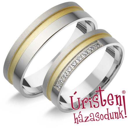Fehér-sárga arany karikagyűrű gyémánt kövekkel.