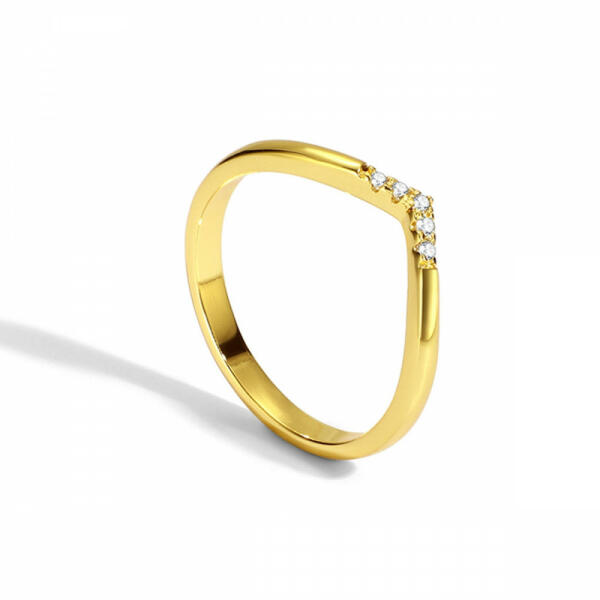 Fehér-sárga arany karikagyűrű cirkónia kővel.