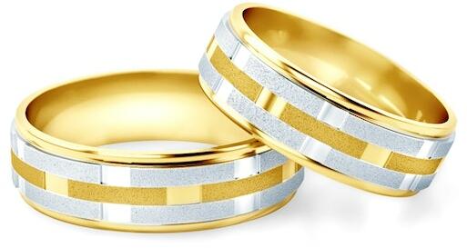 Esküvői karikagyűrűk: kétszínű arany, lapos, 6 mm