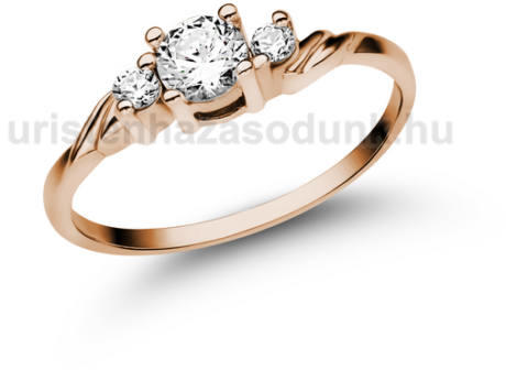 Csavart fazonú eljegyzési gyűrű 3 darab cirkónia kővel, rozé arany foglalatban.