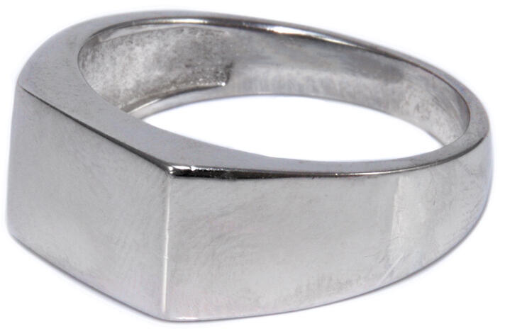 Klasszikus és kedvelt fazonú, ródiummal bevont, fejrésze sima, akár gravírozható szögletes ezüst pecsét gyűrű.