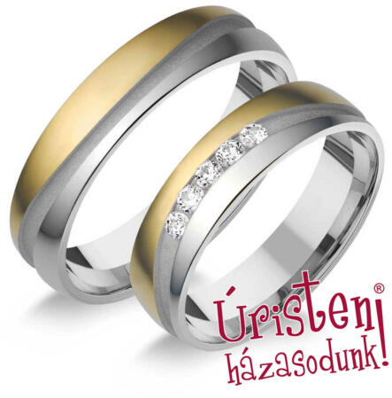 Fehér-sárga arany karikagyűrű gyémánt kövekkel.