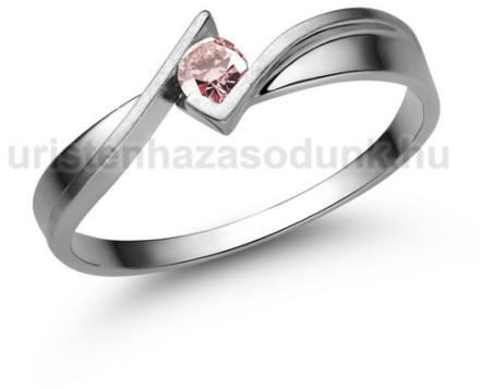 Fehér arany szoliter gyűrű rózsaszín zafír kővel, modern, formatervezett foglalatban.