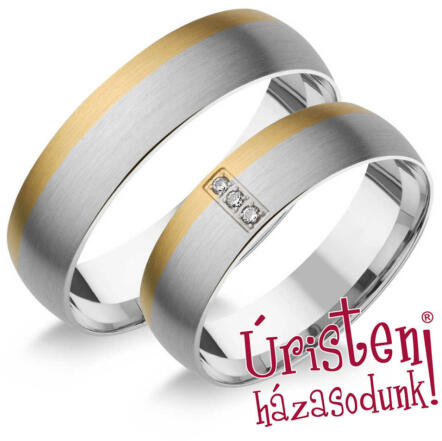 Fehér-sárga arany karikagyűrű gyémánt kövekkel.