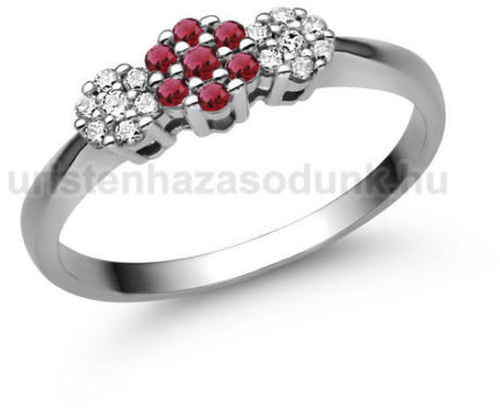 Különleges eljegyzési gyűrű rubin és gyémánt kövekkel, melyek 3 virág formát alkotnak.