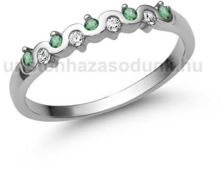 Hullámos, fehér arany eljegyzési gyűrű smaragd és gyémánt kövekkel.