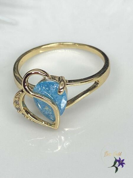 Eljegyzési szoliter gyűrű, kék zafír kővel és különleges szív formával a gyűrű sínben, cirkóna kővel.