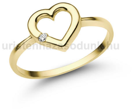 Szív alakú, sárga arany eljegyzési gyűrű, 1.6 mm átmérőjű cirkónia kővel.
