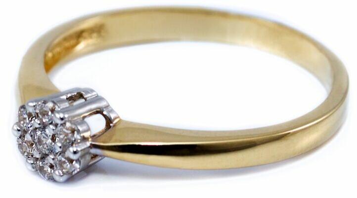 Praktikus stílusú eljegyzési gyűrű 0.11 ct-os gyémánt kővel sárga arany foglalatban.