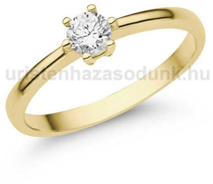 Klasszikus, sárga arany szoliter gyűrű 4 mm átmérőjű cirkónia kővel.